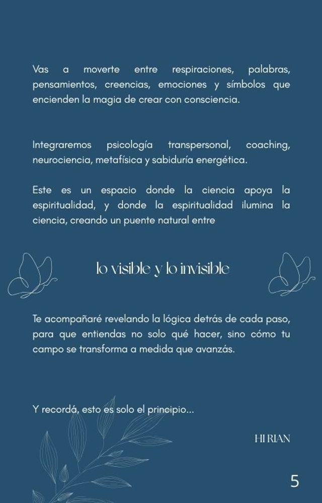 Un viaje de 21 días para reprogramar tu energía, recordar quién sos y manifestar desde tu identidad más auténtica. Un entrenamiento cuántico–emocional para alinear tu mente, tu alma y tu realidad. Activaciones, ejercicios y prácticas para crear la vida que tu corazón ya sabe que es posible.